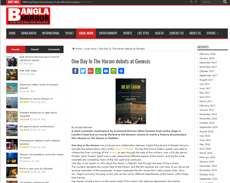 Bangla Mirror January 2018 edition. https://banglamirrornews.com/2018/01/24/one-day-in-the-haram-debuts-at-genesis/
